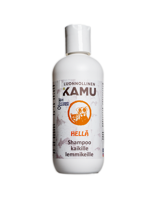 Luonnollinen KamuHELLÄ-shampoo pesee pehmeästi. Kuvaus Käyttö ja turvallisuus Sisältö Hellää pesua KAMU HELLÄ shampoo sopii koirien pehmeälle pentukarvall...