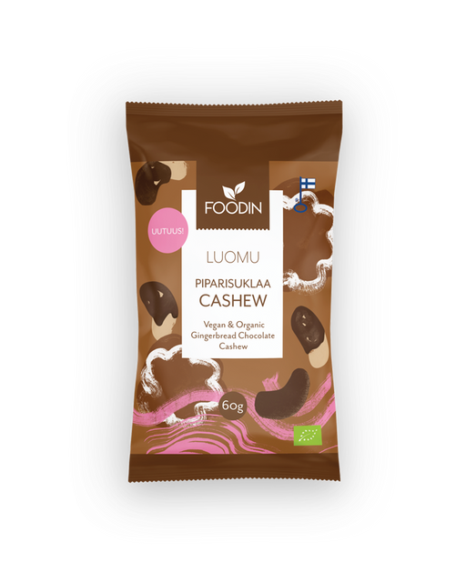 Katso kaikki tiedotPiparisuklaacashew, luomu, Foodin, 60 g