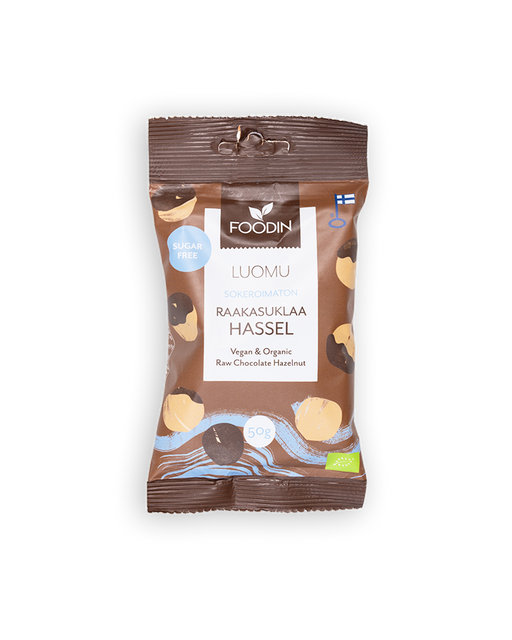 Katso kaikki tiedotRaakasuklaahasselpähkinä, sokeroimaton, luomu, Foodin, 50 g