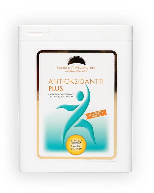 Antioksidantti PLUS tukee tehokkaasti vastustuskykyä ja auttaa jaksamaan. Kuvaus Käyttö Ainesosat Tehoa, tukea ja tarmoa koko keholle! Tä...