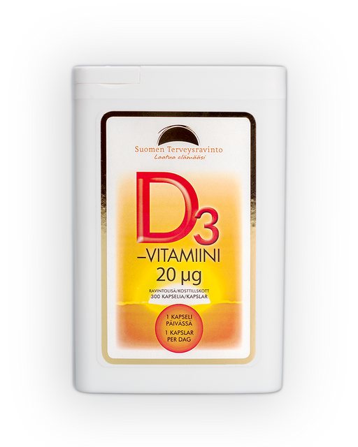 D3-vitamiini, 20 µg, 300 kapselia