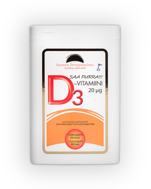 Ympärivuotinen D-vitamiinin nauttiminen antaa hyvän pohjan kehon vastustuskyvylle. D-vitamiini tuotteiden vahvuudet ovat 20 µg, 50 µg ja 100 µg.